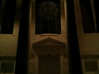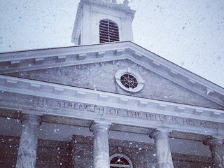 Located on the highest point of the campus. "The Strength of the Hills is His Also" is inscribed over the portal.