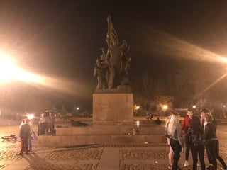 Охраняют свора бездомных псов, школьники в почетном карауле и милиция на скамеечке в "пыхтах"!
