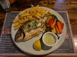 Очень вкусно и большие порции, брали дораду. К горячему подают овощи и гарнир или салат
