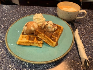 Вкусный завтрак, приятное кафе.