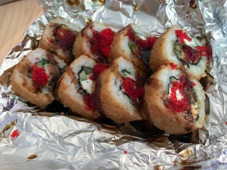 Впервые вижу, чтобы в горячих роллах темпурную смесь заменяли панировочными сухарями! Жирно, невкусно, но при этом нажористо.