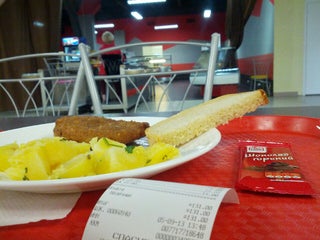 Днем это обычная столовая. Здесь немного грязновато и холодно(зимой). Зато немаленькие порции.