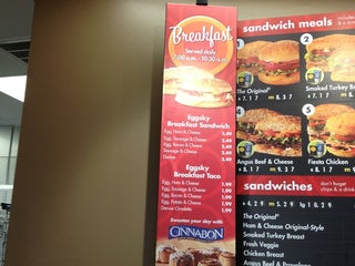 Bread was hard, meat lukewarm but good flavor. Ordered large drinks in order to enter codes for a sweepstakes but the cups had no codes.