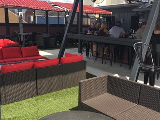Outdoor bar and great food over looking the city of Fredericksburg.