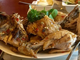 Chicken grill, but all food is from the steamer and deep fry, look close there is a towel on the grill :-) drive on don't eat here