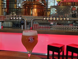 Nice brewery in former church. Good selection of there own beers and some good barfood. Sitting is in and outside. 10 min walk from central station. Nice IPA’s