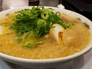 味玉ラーメン、思った以上にあっさり、一味きいてる、細ストレート硬めでちょうどいい、デフォでネギ多め