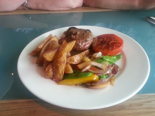 Kjempekoselig uteservering på sommeren - og relativt god mat!