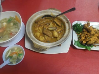 We had their fried wanton noodles, Cantonese noodles, and curry mutton rice and we were all happy. Totalling RM 24ish (plus one soya drink). Good food with air-conditioning room, won't ask for more.