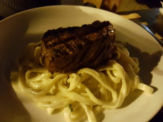 Fettuccine com filé ao molho oca é um prato sem igual, serve muito bem!