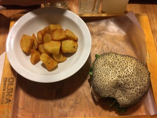 Fuimos con amigos. Elegí la Patagonia de cordero y la verdad deliciosa!!!!! Las papas súper ricas y la cerveza muy muy rica y eso que no soy de tomar mucha cerveza. Me encanto el ambiente y atención