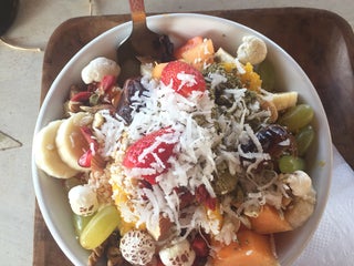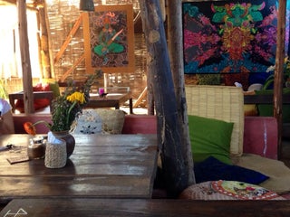 Hippie like with incredibly good vibes of service, art and taste. Must have is the Nirvana fruit salad
