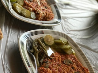 Toursh chicken kebab was tasty and fried fish was so fresh and yummy. Rice was normal, olives were so good.