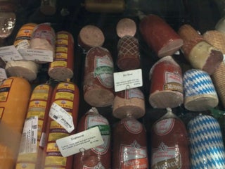 Excellent sausages, German beer, deserts, deli salads, sauerkraut, chocolates. Easy to go overboard!