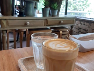 A cafe in a glass house. The coffee are bomb! Beautiful deco. They offer piccolo and flat white. I'm excited!