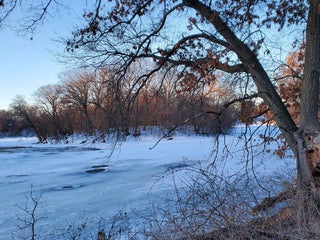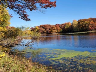 Mix of native prairie, rolling hills, woods, and of course, the lake. Have spotted trumpeter swans and other birds during spring and fall migrations enjoying the respite this location offers.